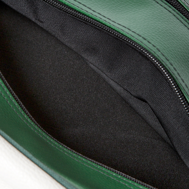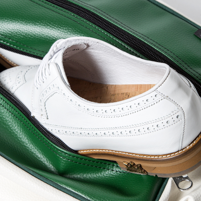 TOPLIFESTYLE Shoe Bag Classic-GREEN "JONES" 価格: ¥13,000 (税込 ¥14,300) 販売期間: 数量: 個 在庫: ○あり 在庫 ○あり 返品についての詳細はこちら 人気のツアーバッグRIDERに使用されているPVC素材で作られたクラシックシューズケース。 メンズシューズもゆったり入る大きさです。 左側のファスナーからはシューズを両足収納することができ、右側のファスナーは浅いポケットになっています。